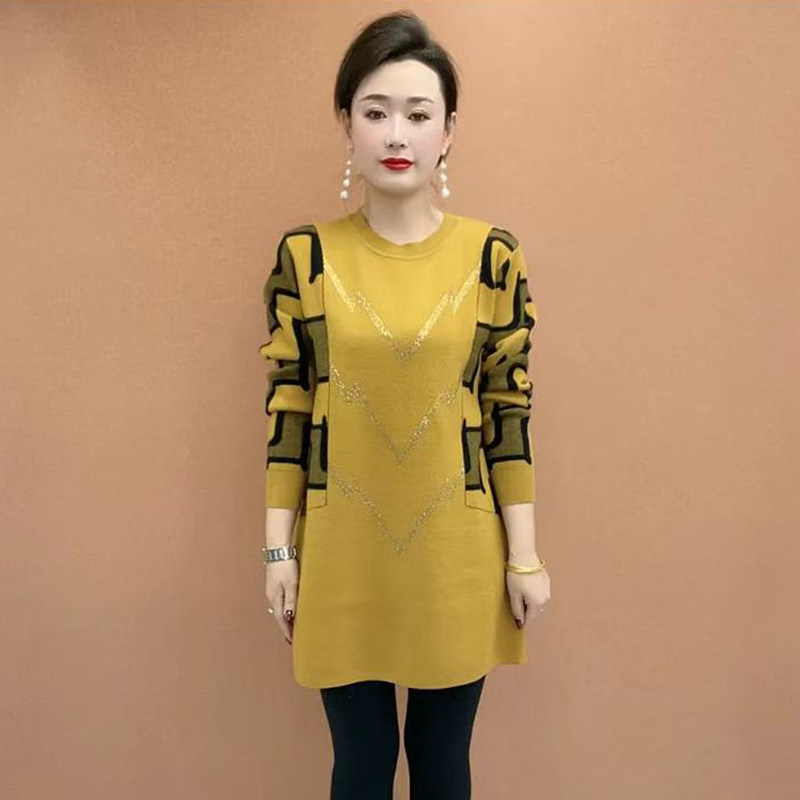 秋冬妈妈时尚大码遮肚显瘦40岁50中长款针织毛衣中年女打底衫裙子