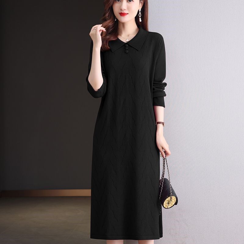时尚中长款毛衣裙秋冬季洋气妈妈针织衫宽松显瘦中年女打底连衣裙