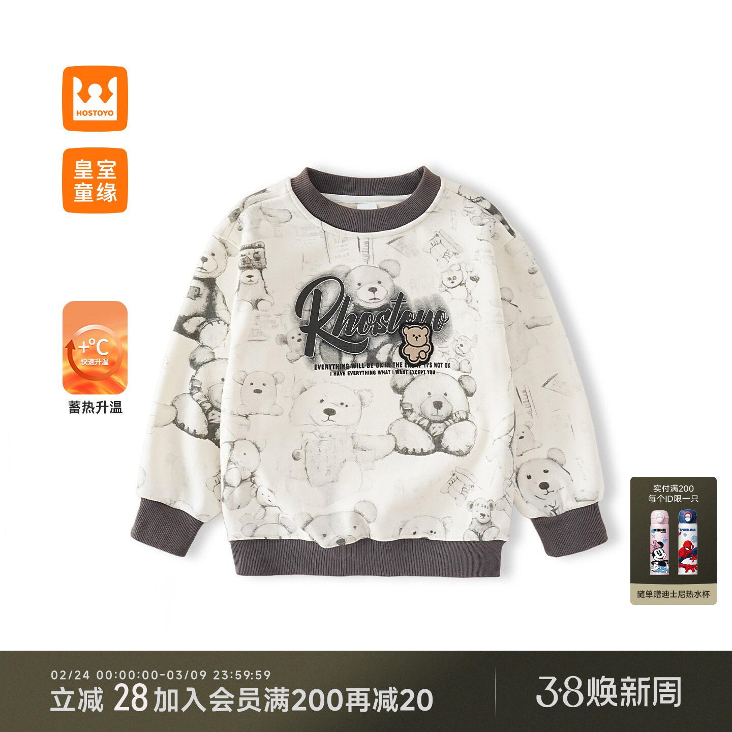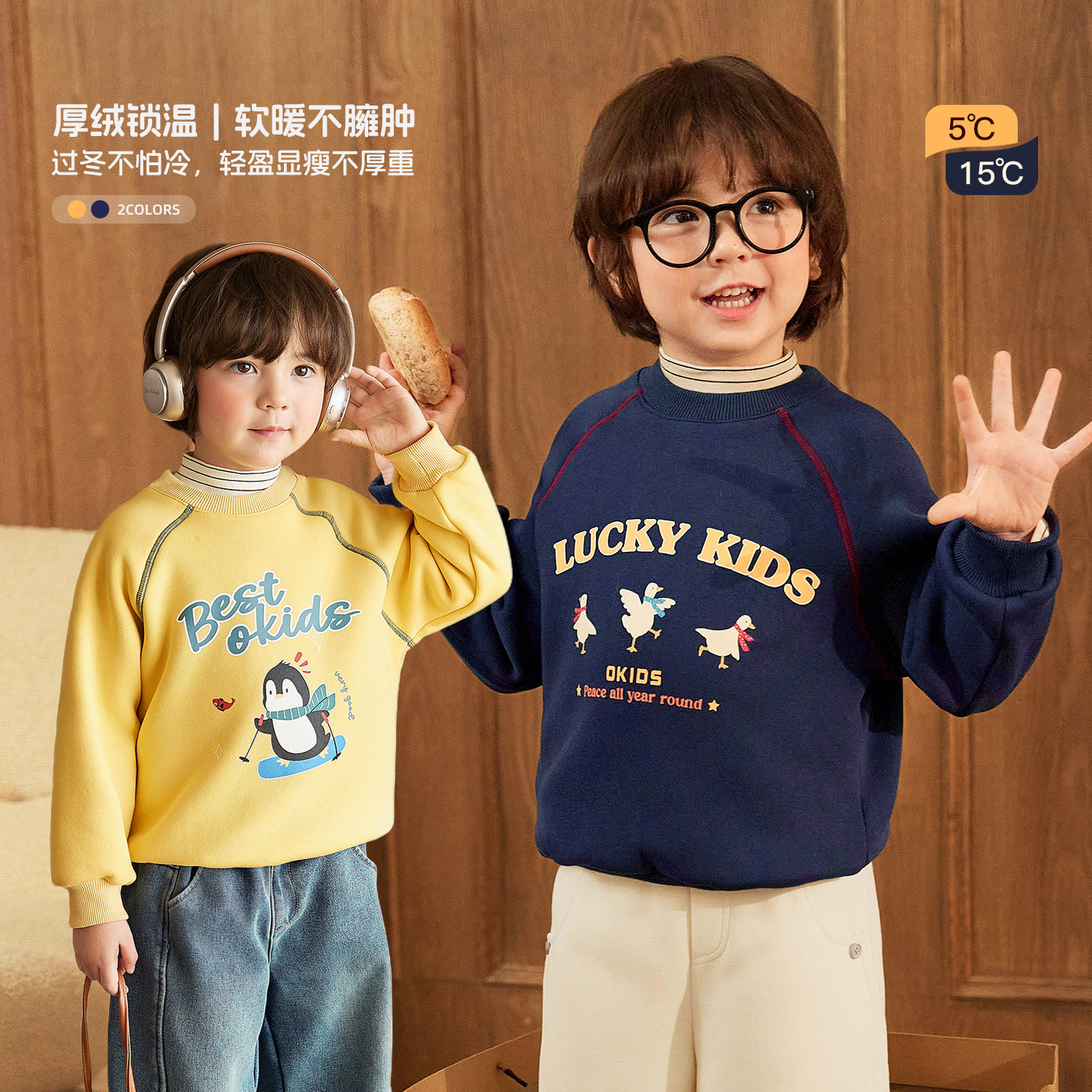 小o宝okids男童卡通图案卫衣加绒加厚2025新款秋冬厚绒锁温针织衫