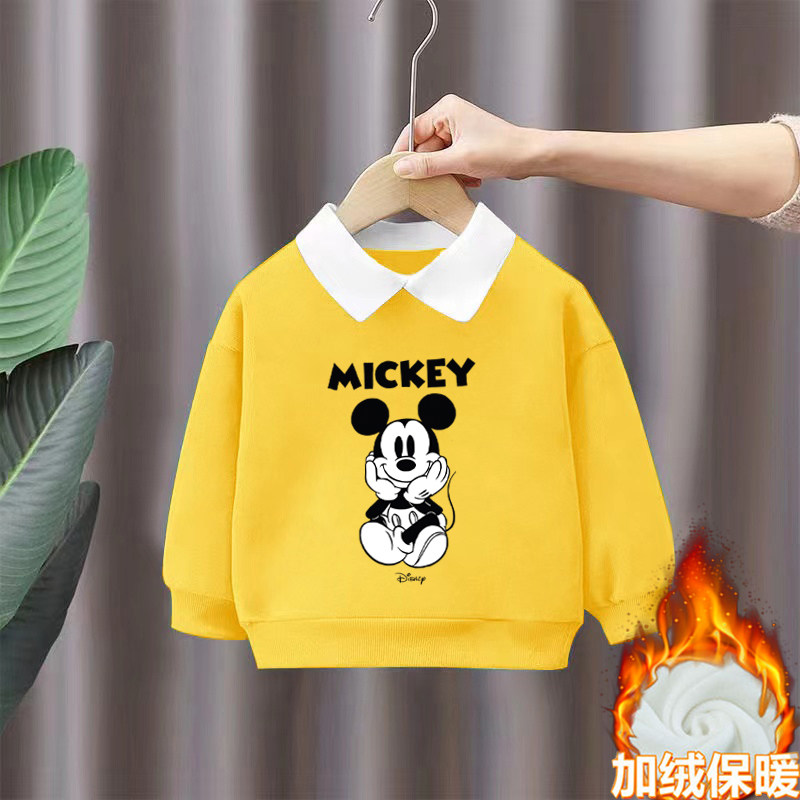纯棉男童加绒加厚长袖POLO领卫衣秋冬季儿童宝宝卡通印花保暖上衣