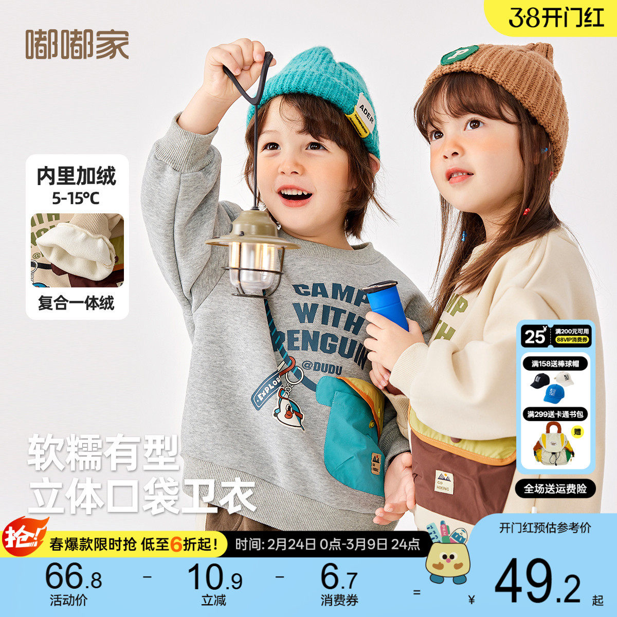 【卡通】暇步士童装儿童加绒卫衣冬款男大童宝宝连帽女童加厚卫衣
