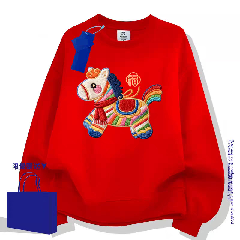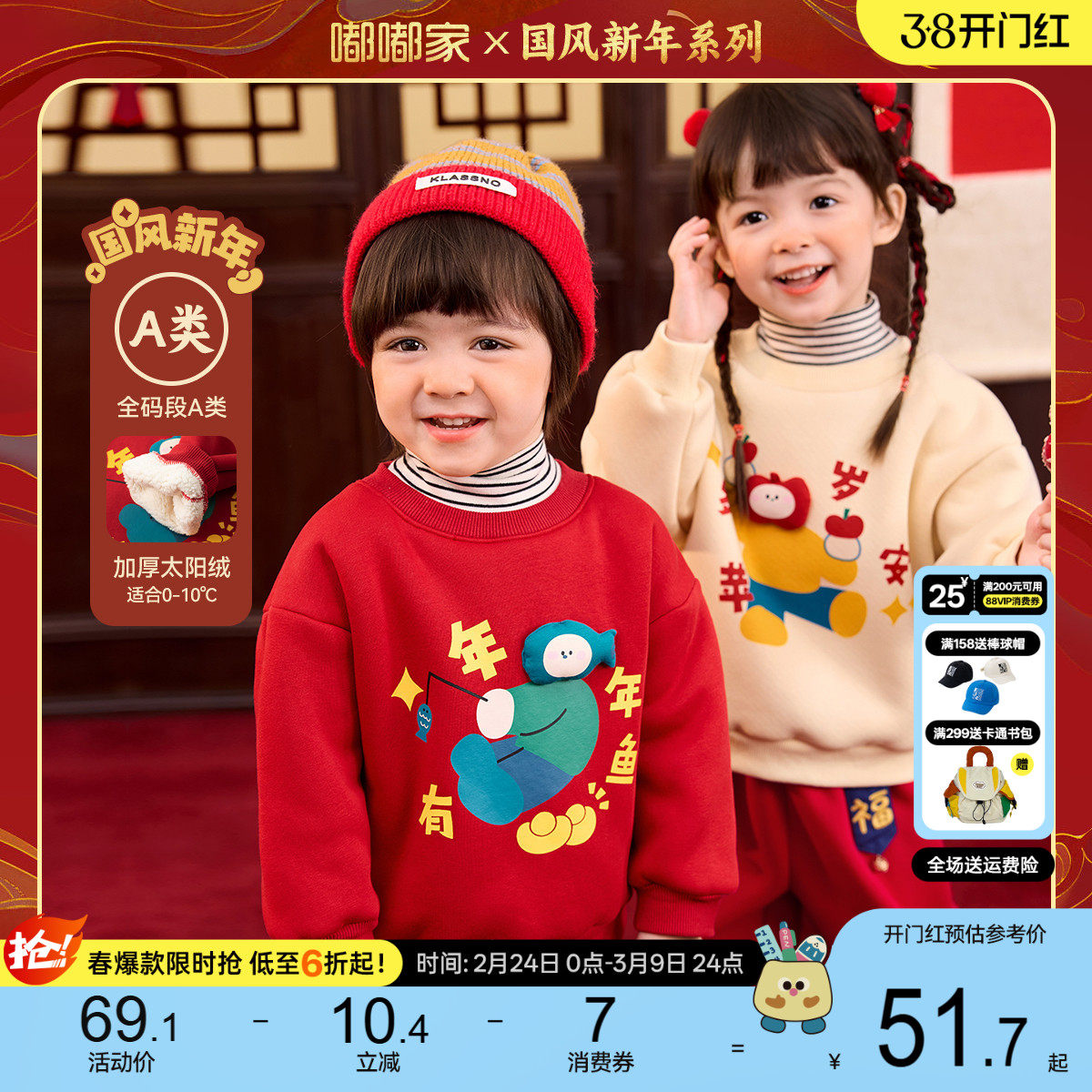 嘟嘟家宝宝冬季卫衣红色儿童拜年服男童加绒卡通衣服新年加厚冬装