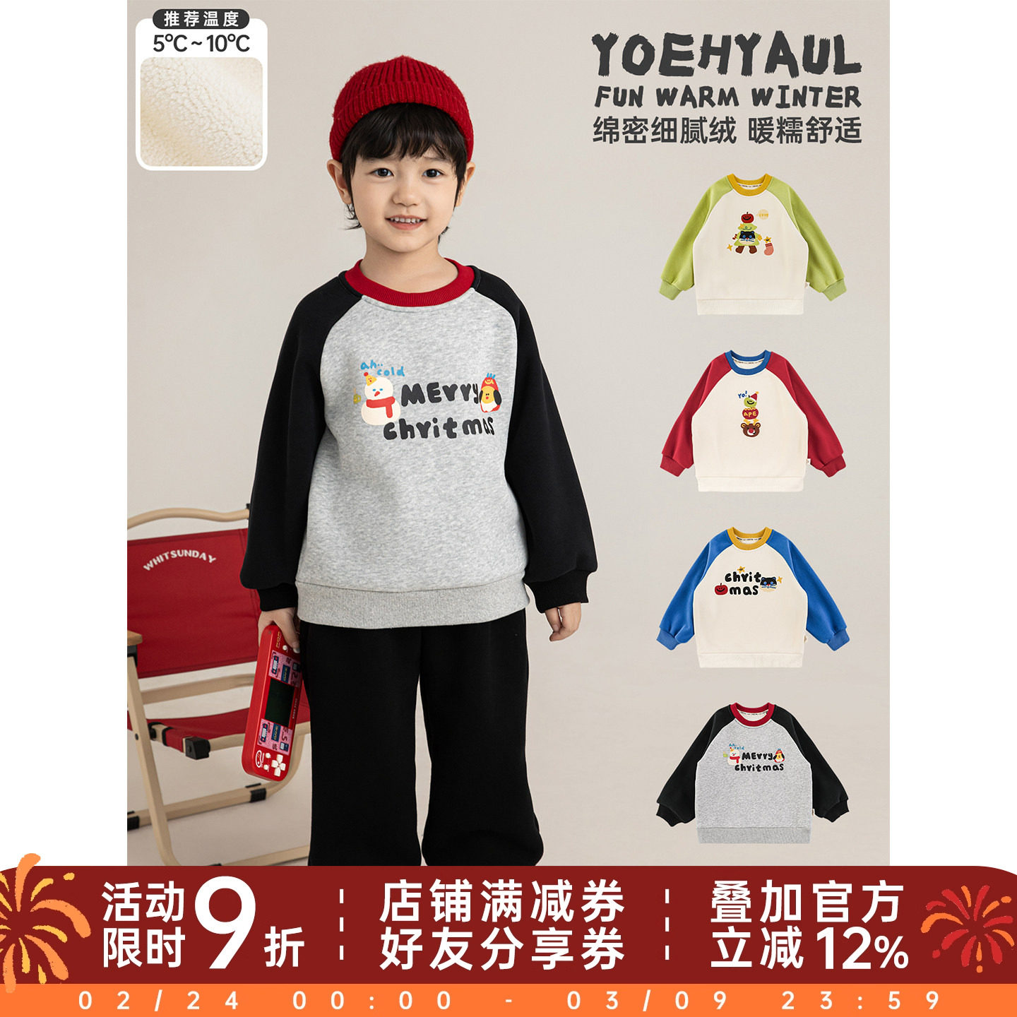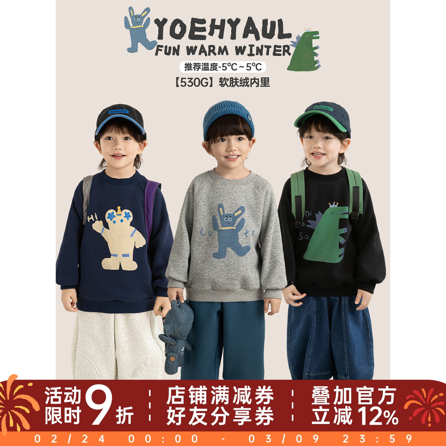 幼悠男童加绒加厚卡通印花卫衣冬季童趣可爱蓬松绵软宽松休闲卫衣
