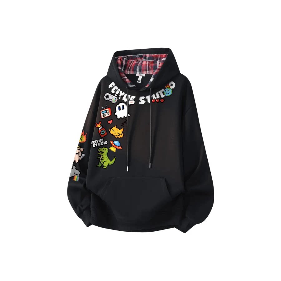 美式复古连帽卫衣男女加绒加厚宽松潮牌痞帅高街卡通印花上衣外套