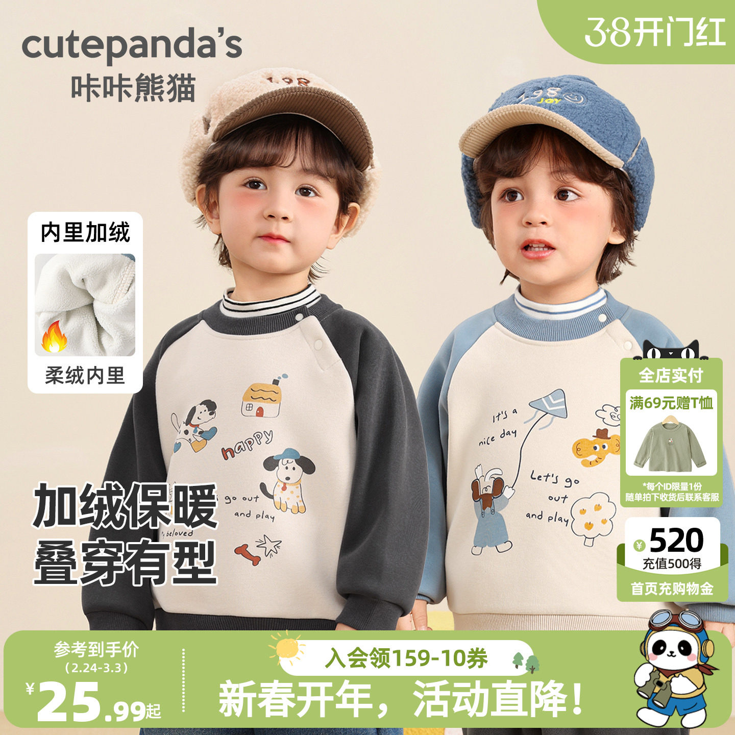 咔咔熊猫宝宝卡通卫衣秋冬儿童加绒保暖上衣冬装男童女童加厚衣服