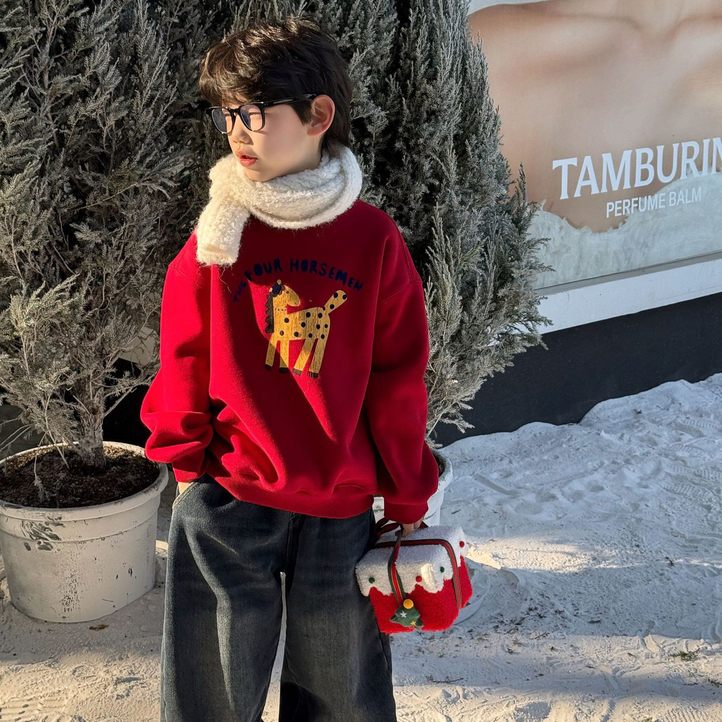 加绒加厚 MANUKIDS童装男童25冬季新年马年卡通保暖中大童卫衣