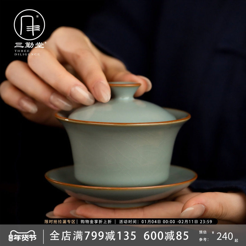 三勤堂普洱茶盖碗景德镇陶瓷汝窑功夫茶具泡茶器茶杯盖碗新品特价
