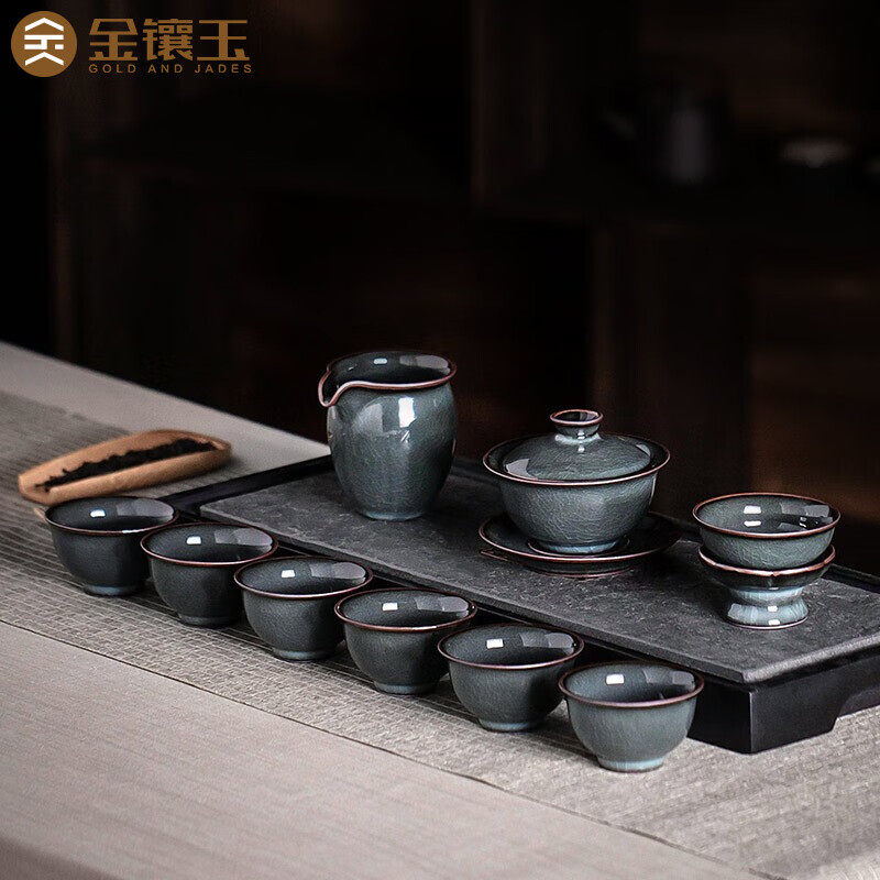 乌金釉茶具套装家用客厅陶瓷建盏茶杯盖碗泡茶壶小套轻奢高档喝茶