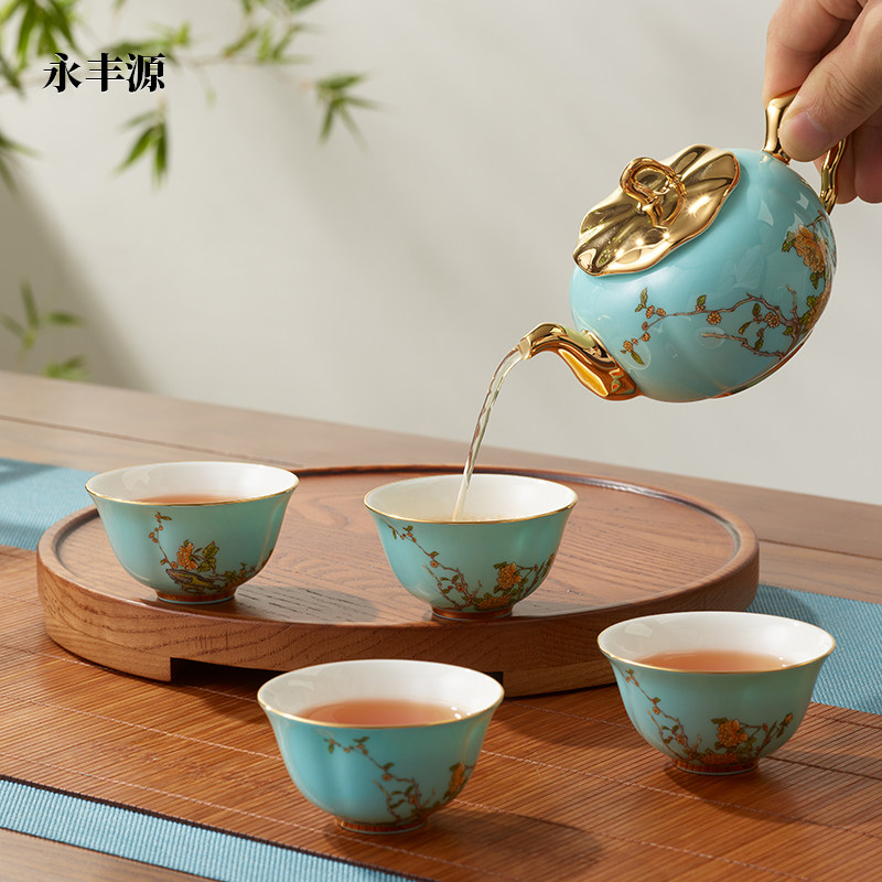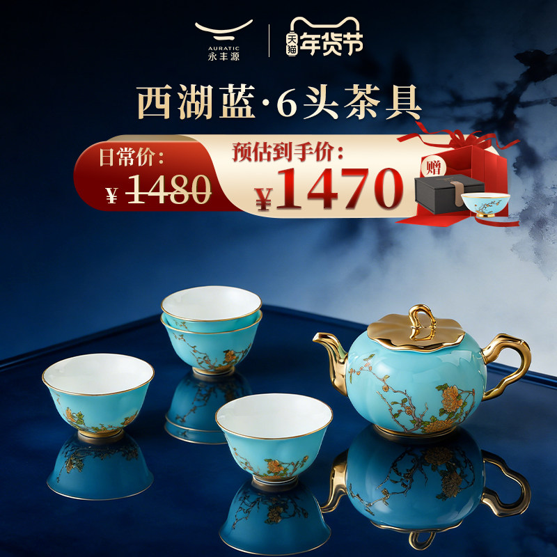 【买赠】永丰源西湖蓝6头7头9头茶具中式茶壶茶杯盖碗高档年货礼