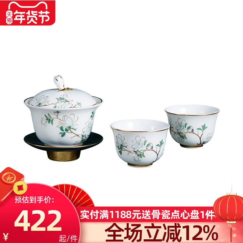 潮州功夫茶超薄骨瓷纯白玉兰铃铛品茗工夫茶杯盖碗套装反口不烫手