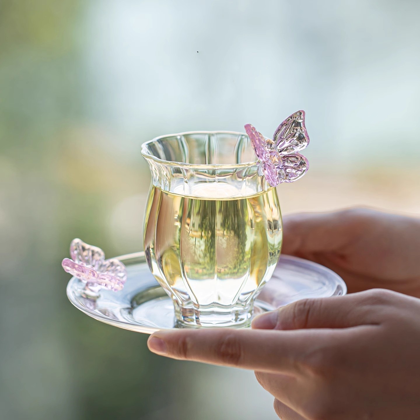 景德镇釉下彩茶器女士茶杯盖碗手绘雏菊清欢高温豆蔻紫女神咖啡杯