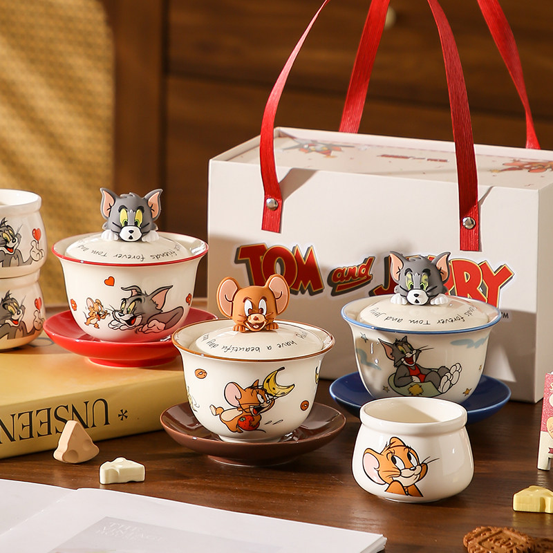 猫和老鼠陶瓷功夫茶杯盖碗茶具礼盒套装高颜值乔迁新婚礼物伴手礼