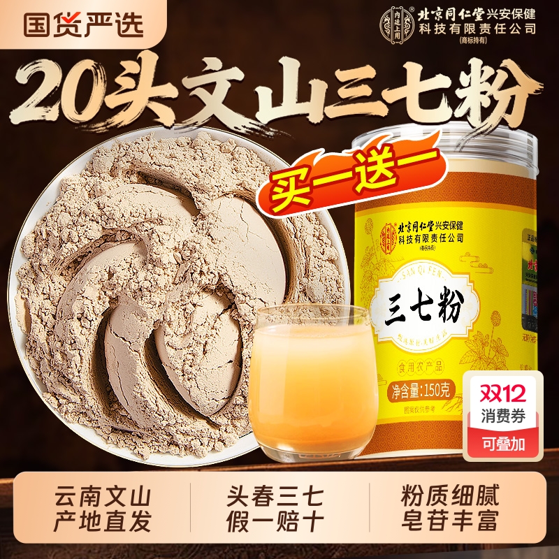 北京同仁堂云南文山三七粉正品官方旗舰店正宗特级纯田七超细打粉
