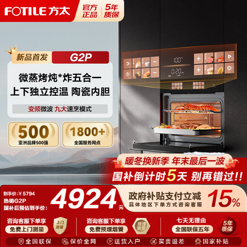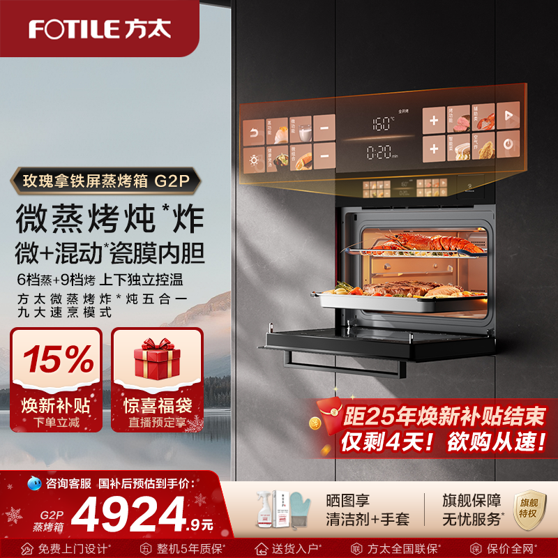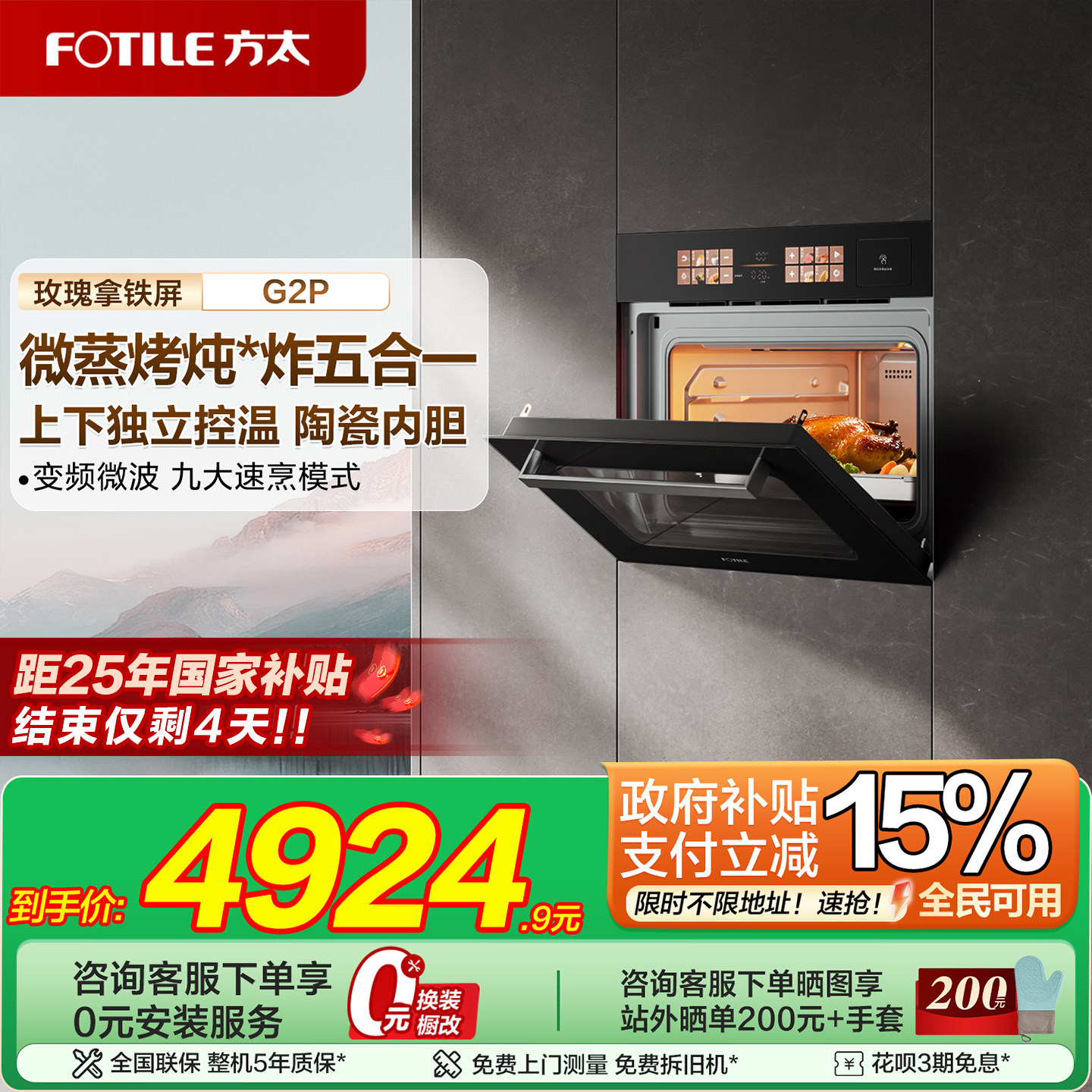 【新品】方太微蒸烤一体机G2P嵌入式微波炉炖炸五合一官方旗舰