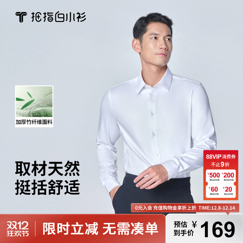 拇指白小衫2025秋季新款男士长袖衬衫初秋休闲加厚竹纤维易打理