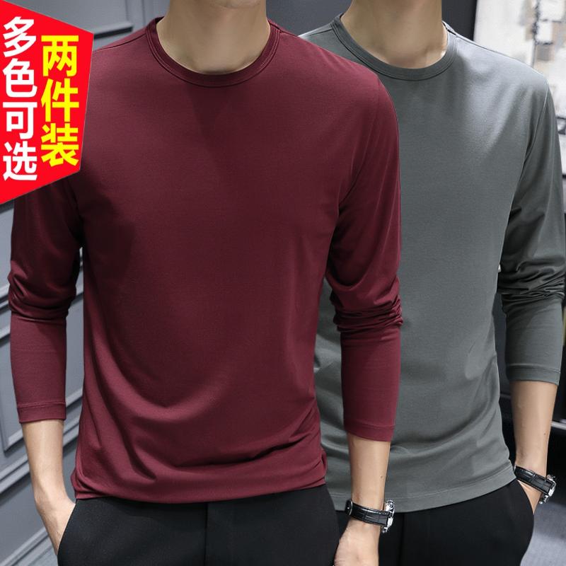 莫代尔长袖t恤男圆领打底衫抗菌防螨秋衣小衫内搭薄款纯色上衣服