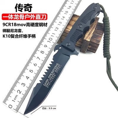 战术野外小刀军刀荒野求生高硬度随身刀具户外防身直刀开刃带刀鞘