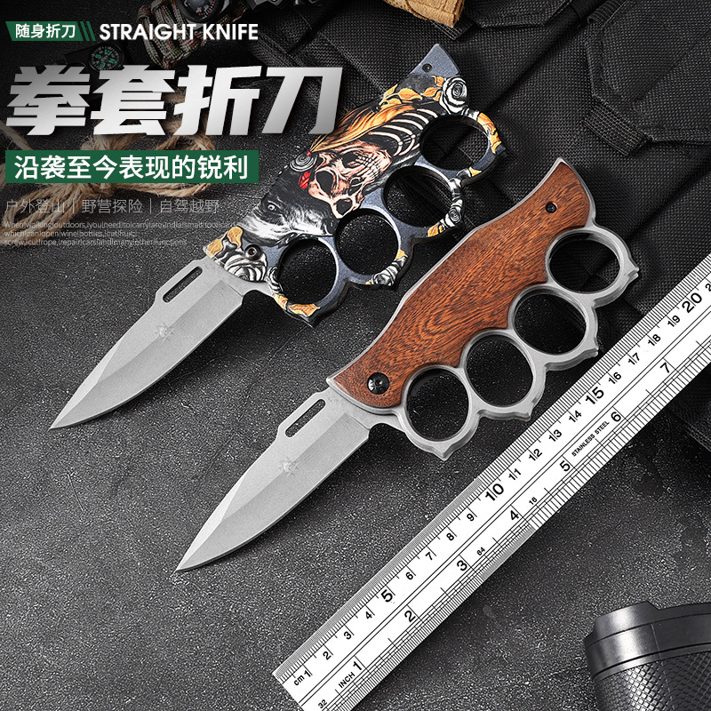 折叠拳套小刀虎指多功能车载破窗器户外防身军刀拳扣四指手撑子刀