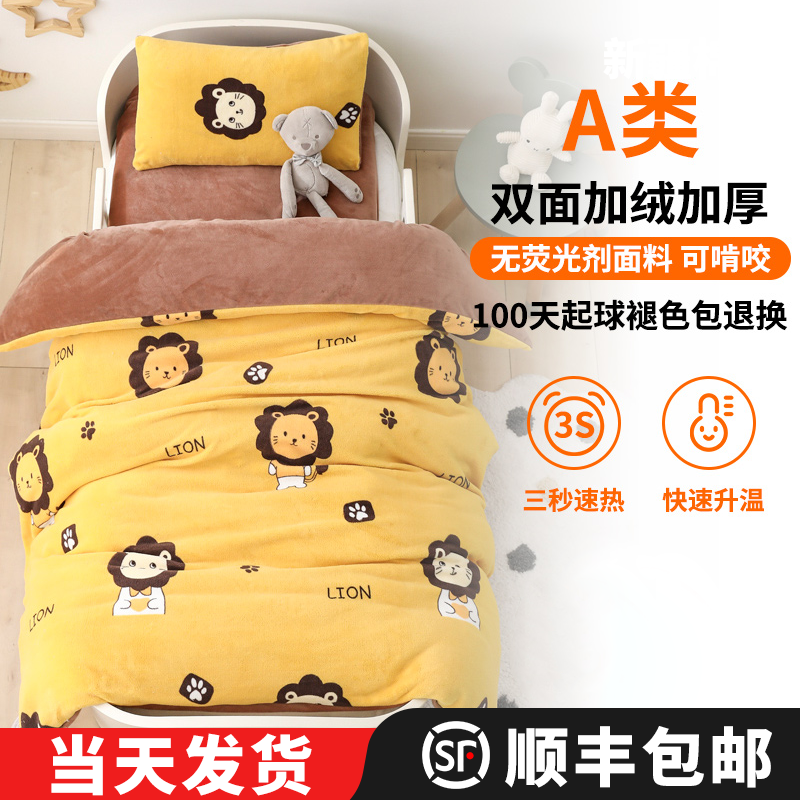 冬季幼儿园被子三件套加绒学校午睡小被子牛奶绒加厚保暖一包入园