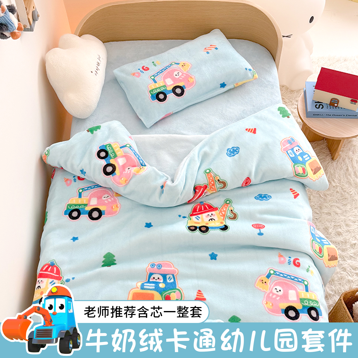幼儿园被子三件套午睡专用六件套冬季牛奶绒儿童被套宝宝被褥婴儿