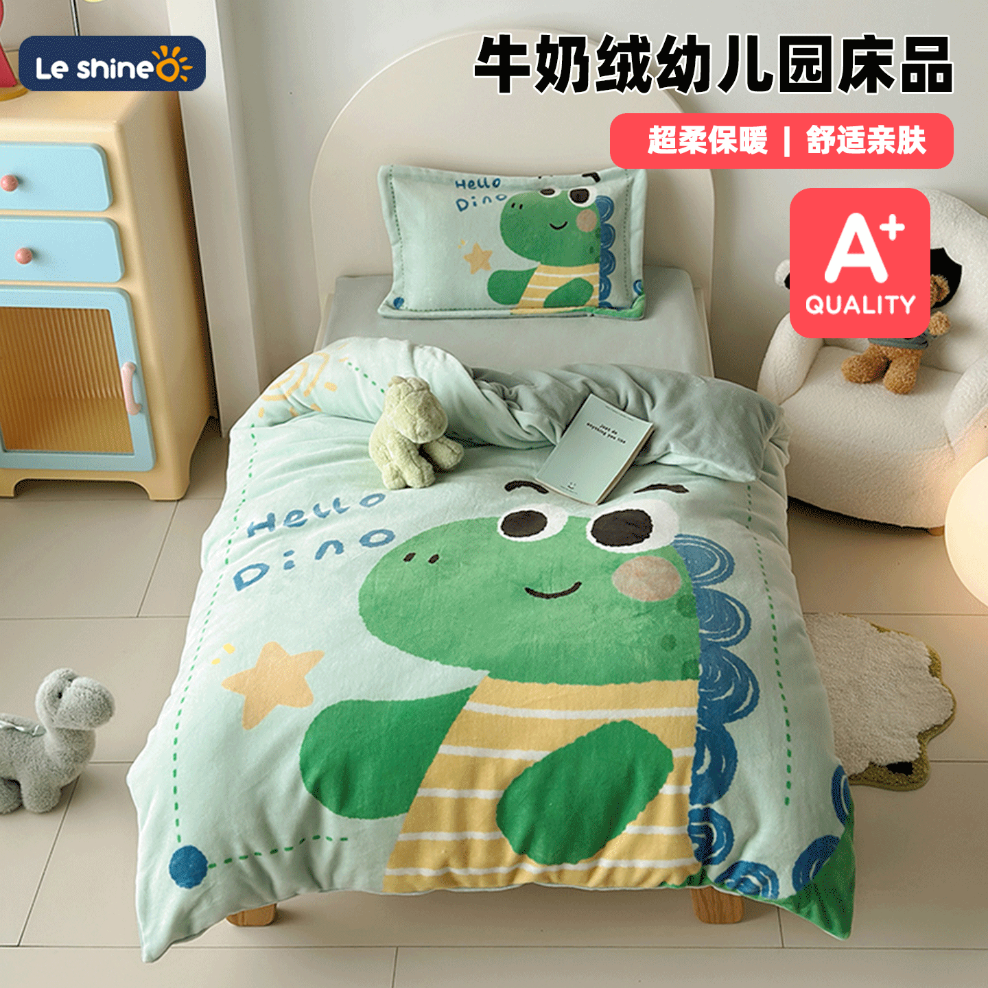 贝肽斯幼儿园被子午睡三件套牛奶绒儿童被套珊瑚绒婴儿床品六件套