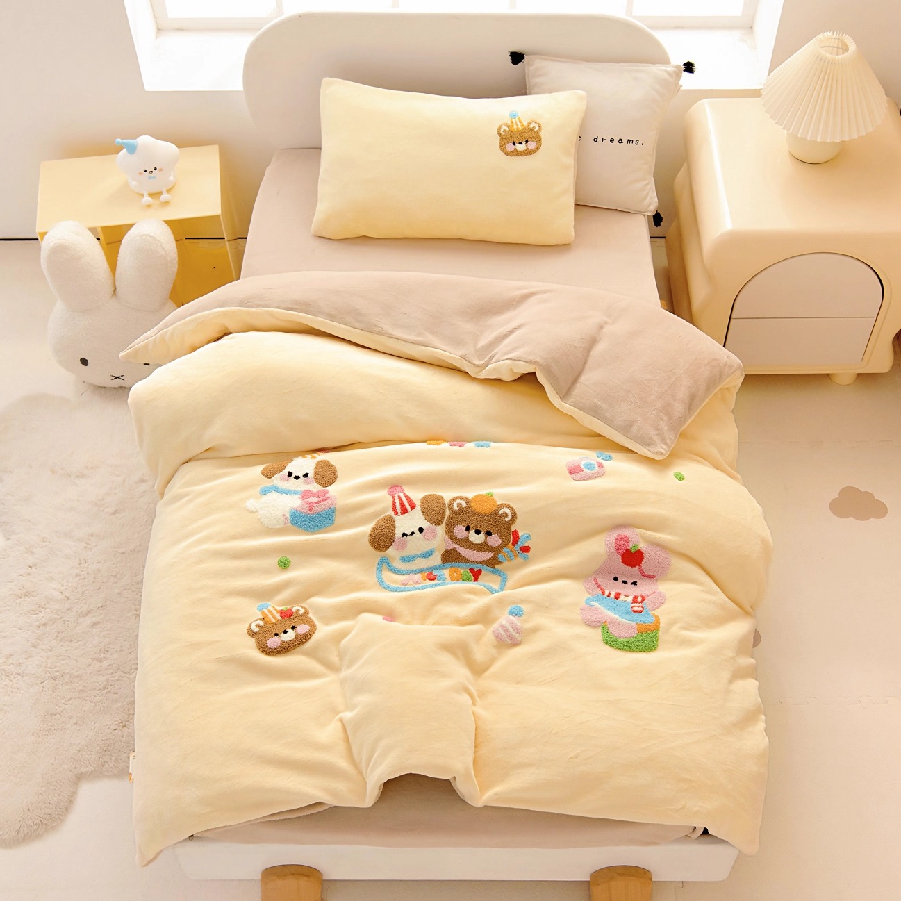 儿童牛奶绒被套120x150cm幼儿园牛奶绒被子三件套被罩单件秋冬季