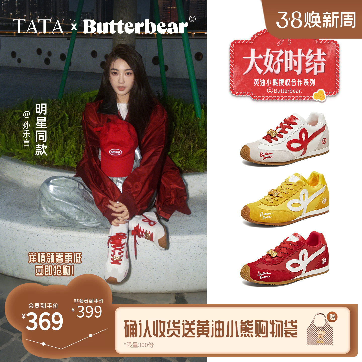 孙乐言同款TATA他她黄油小熊新年阿甘鞋女马年休闲德训鞋GXW02AM6