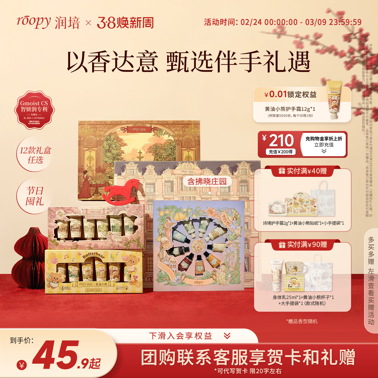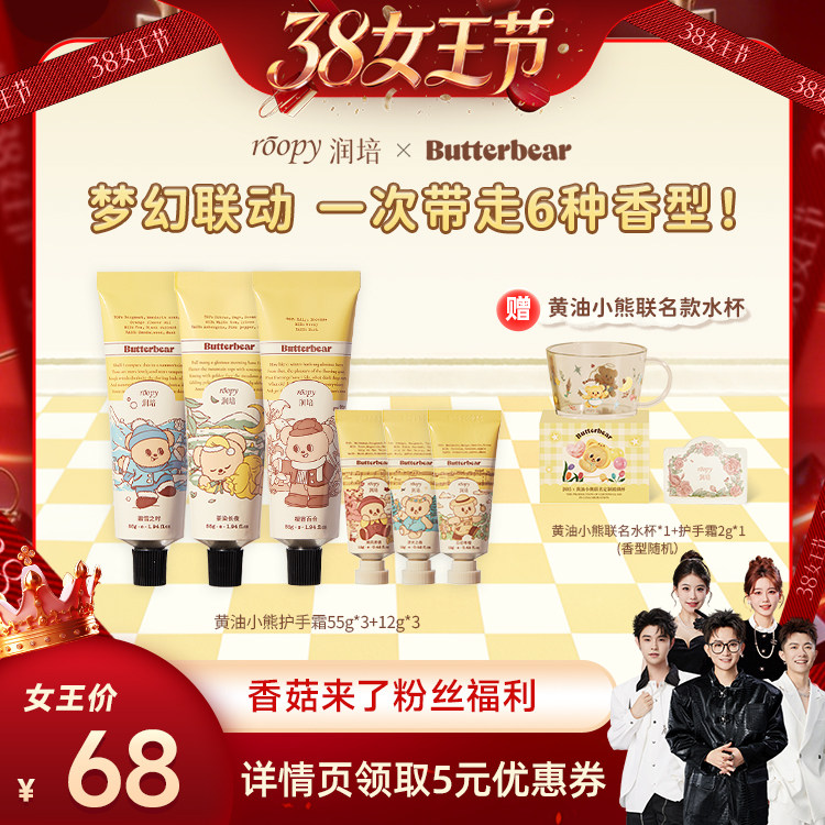 【香菇38女王节】润培黄油小熊联名系列护手霜55g*3+12g*3