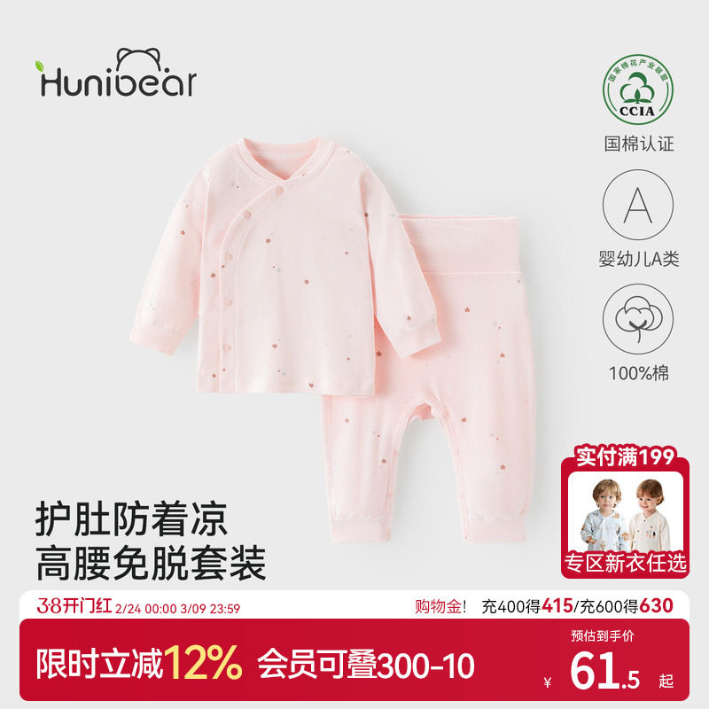 欢喜小熊婴儿内衣套装女宝宝秋季纯棉抗菌秋衣秋裤新生儿春秋衣服