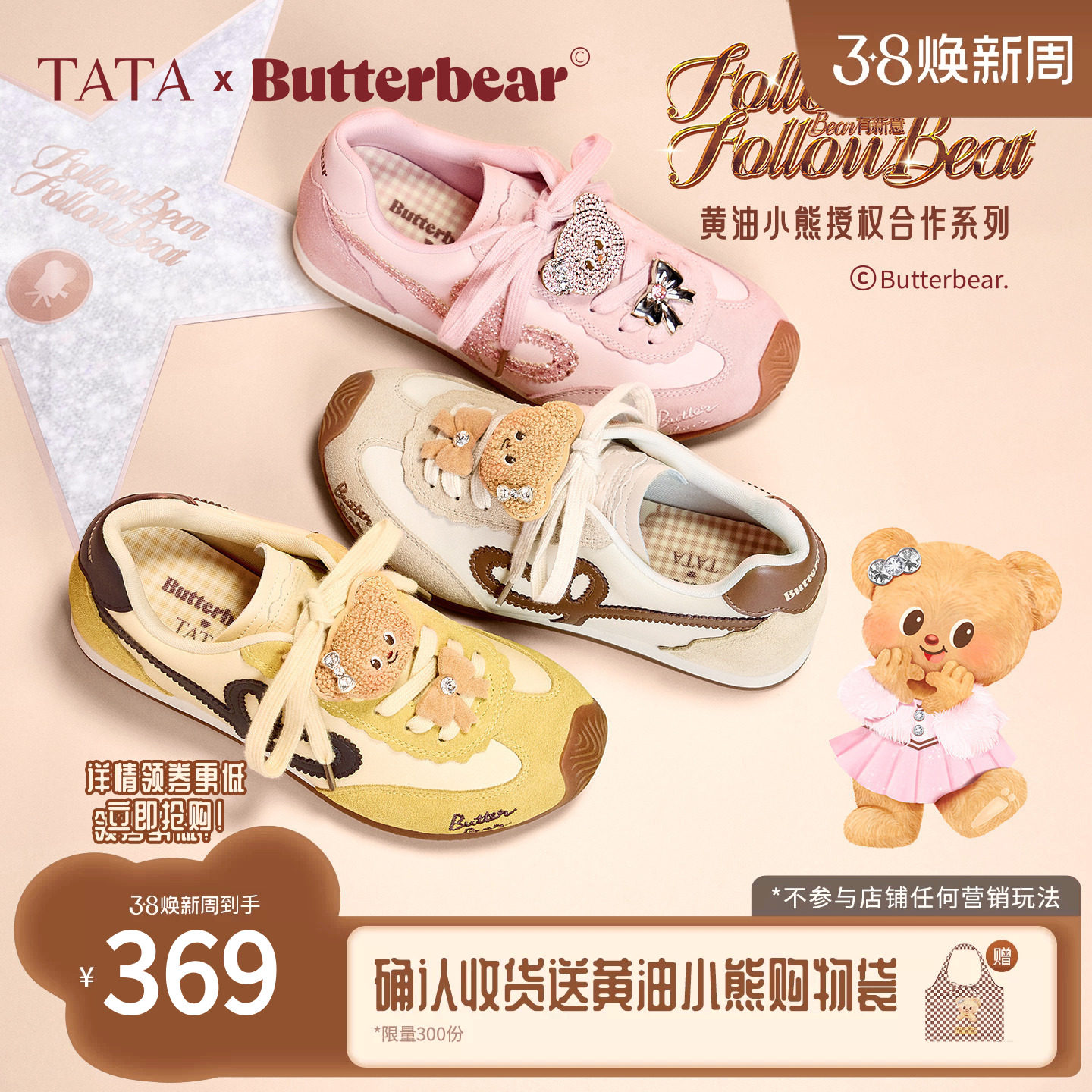TATA他她女鞋黄油小熊联名德训鞋子运动单鞋通勤阿甘鞋GXW01CM5