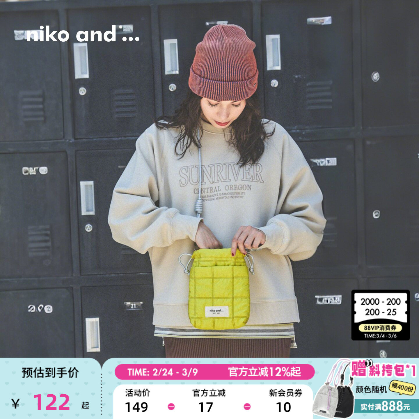 niko and ... 手包女2025新款日系设计多色斜挎手机收纳包592108