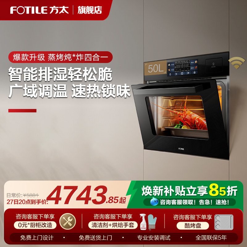 孚帝智能控温嵌入式烤箱蒸箱搪瓷内胆电烤箱空气炸家用蒸烤箱套装