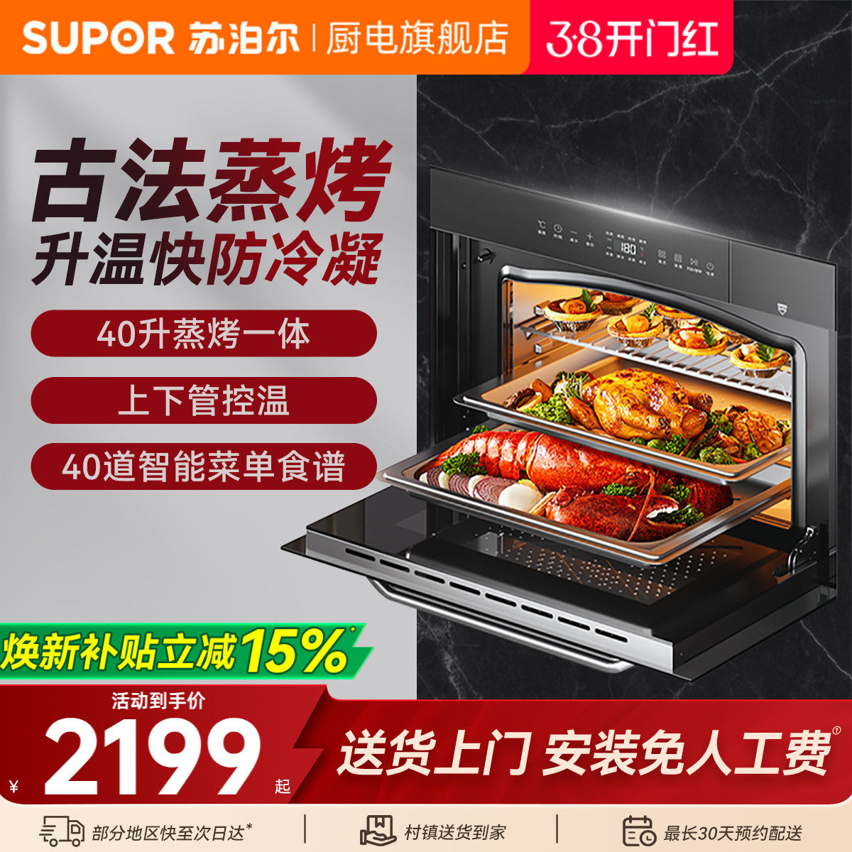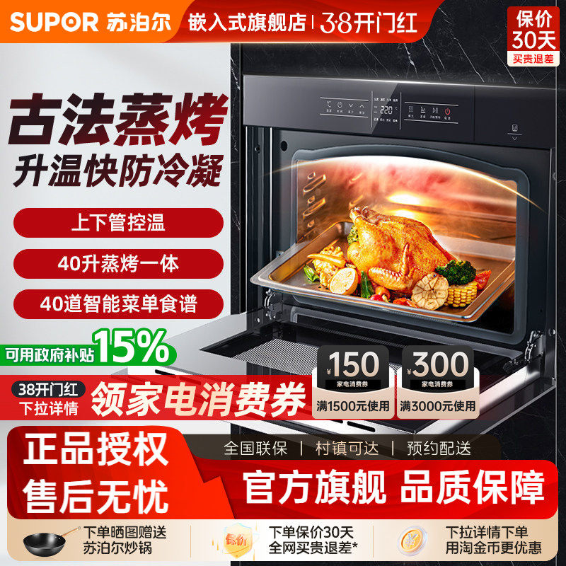 苏泊尔609S蒸烤一体家用电烤箱嵌入式电蒸箱二合一智能40L蒸烤箱