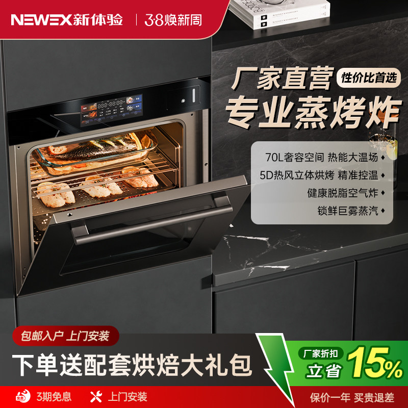 新体验K1K2嵌入式蒸烤箱家用多功能蒸箱烤箱大容量彩屏蒸烤炸一体