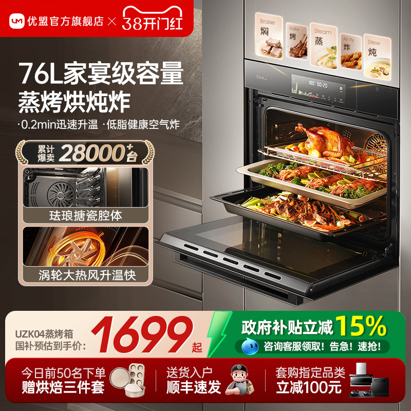[年度爆品]优盟蒸烤一体机嵌入式蒸烤箱家用蒸烤炸电蒸箱四合一