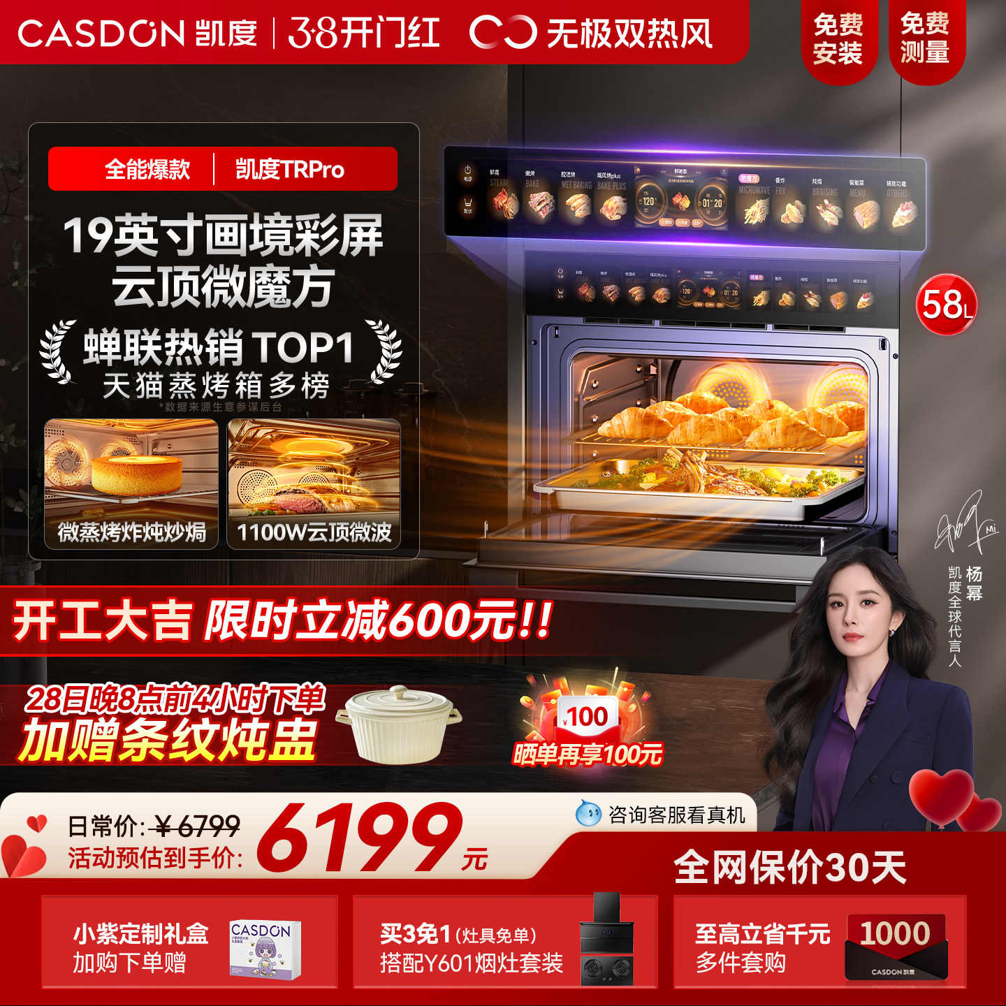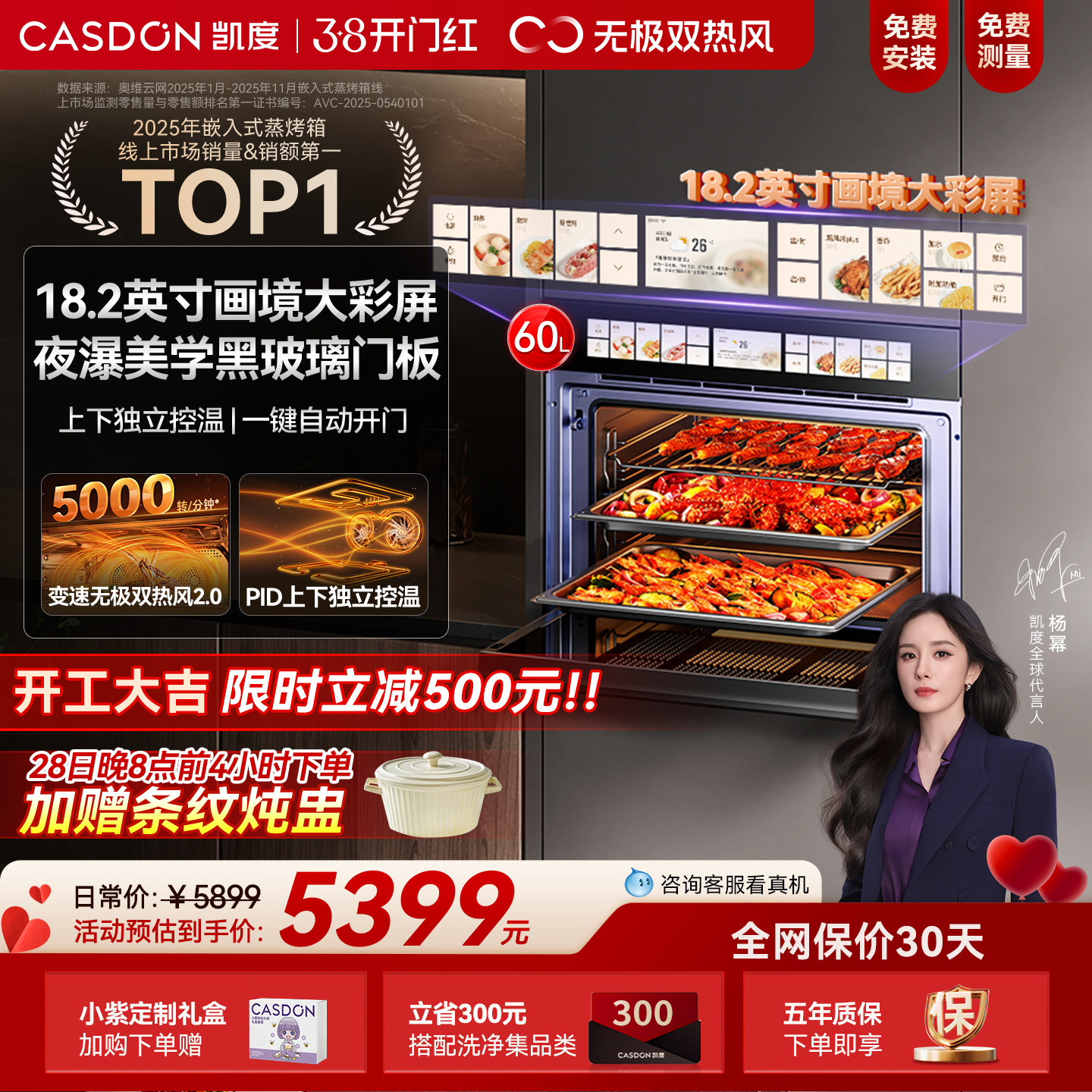 【杨幂推荐】凯度TDPro3全嵌蒸箱烤箱蒸烤一体机嵌入式烤箱双热风