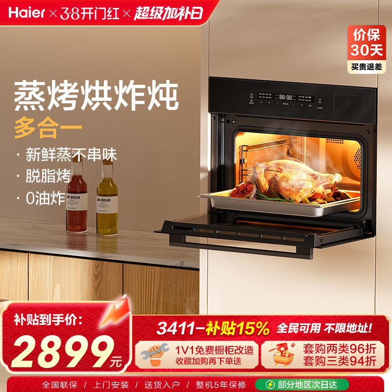 [热销]海尔蒸烤一体机嵌入式家用蒸烤箱蒸箱烤烘炸四合一C50-TAU1