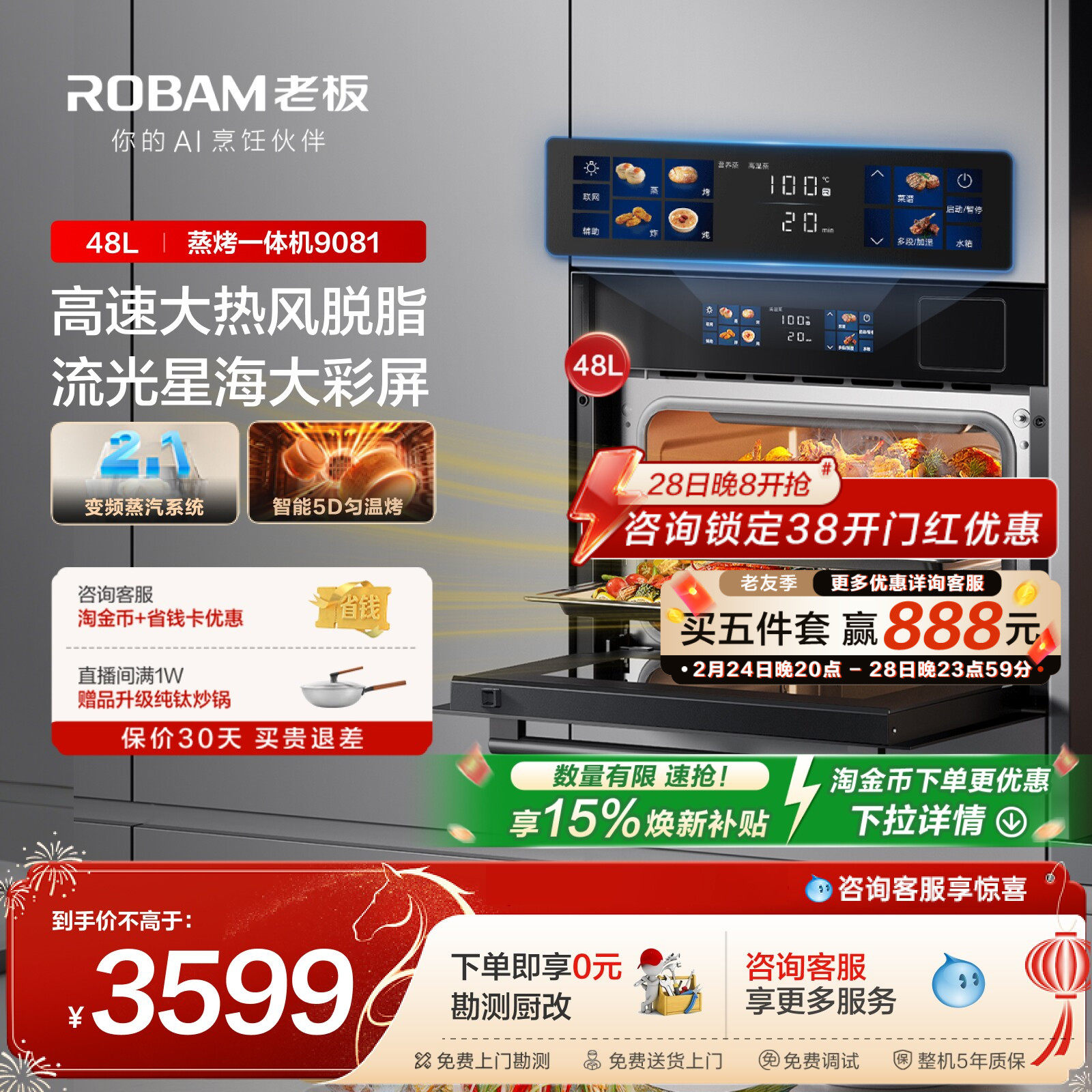 老板9081蒸烤一体机嵌入式蒸烤箱家用蒸箱蒸烤炖炸四合一48L官方