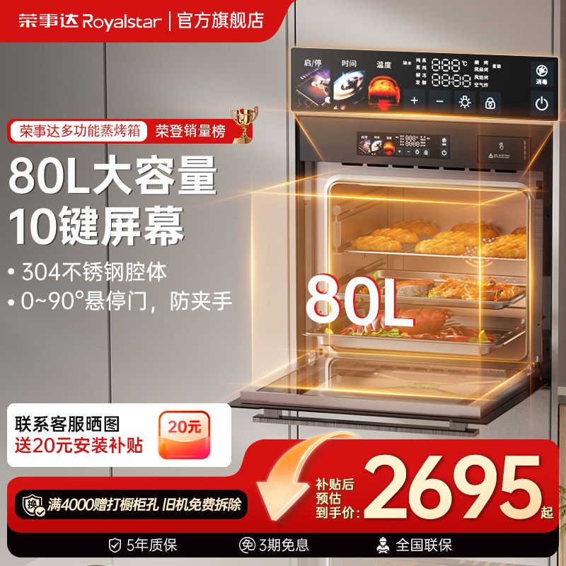 荣事达K3嵌入式蒸烤箱蒸烤一体多功能80L大容量家用蒸箱10键屏幕