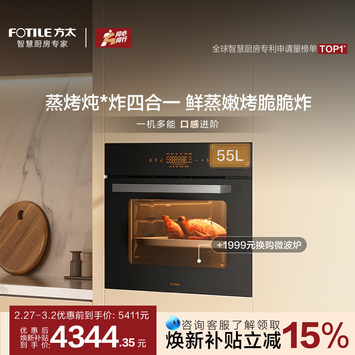 【新品】方太微蒸烤一体机G2P嵌入式蒸箱烤箱微波炉家用官方01