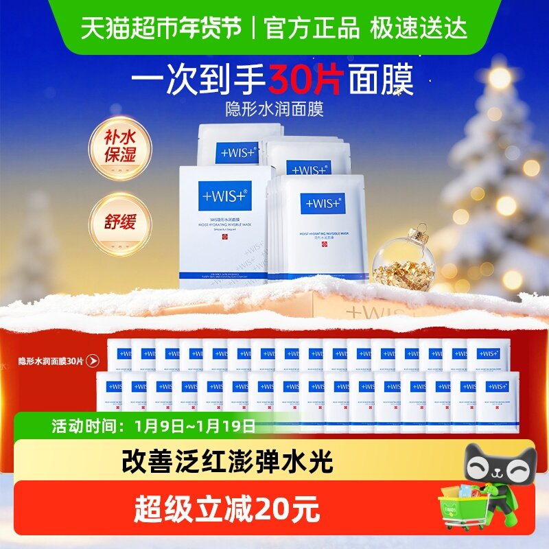 WIS隐形水润面膜30片补水保湿修护舒缓玻尿酸正品男女补水面膜