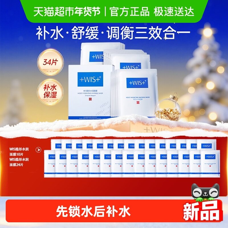 WIS隐形水润面膜34片补水保湿修护舒缓玻尿酸正品男女补水面膜