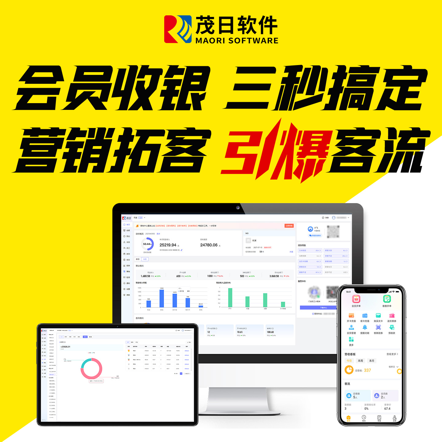 茂日会员卡管理系统美容院美业医美皮肤管理发发廊美发美甲美睫采耳养生馆客户预约营销拓客收银软件一体机