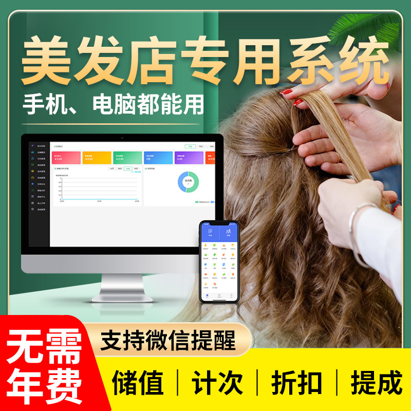 理发店会员卡管理系统美容院美发店美业美甲发廊连锁手机版收银软件剪发卡片定制储值充值刷卡消费一体机电脑