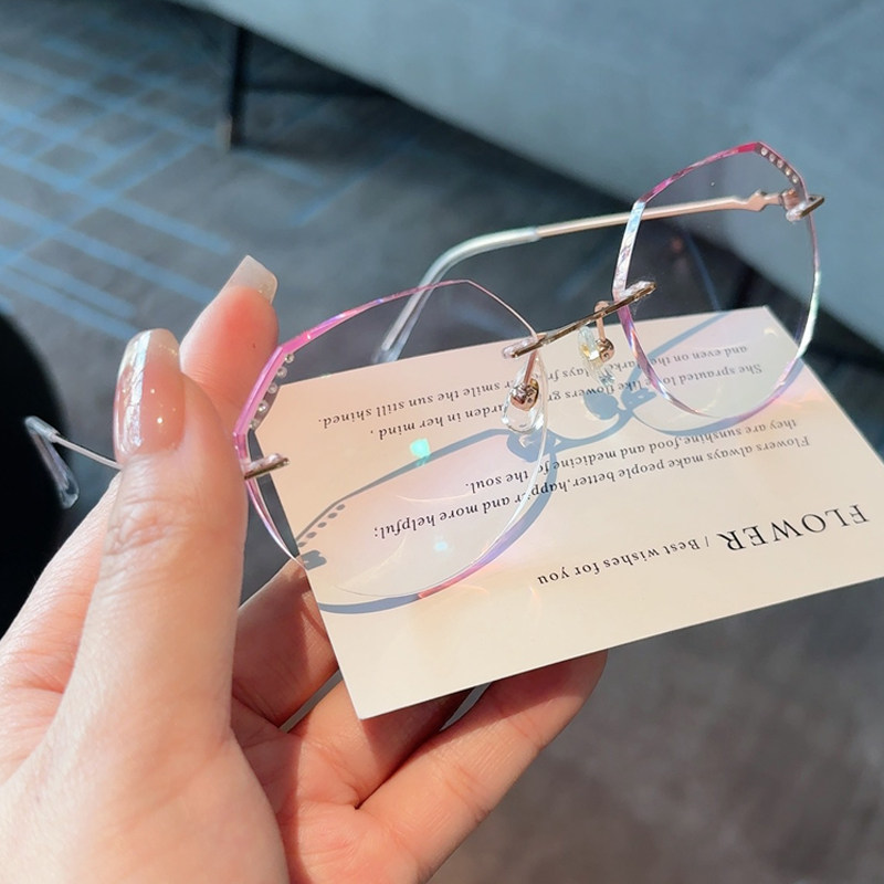 无框切边眼镜女闪粉美妆镜变色素颜眼镜框近视超轻纯钛有度数成品