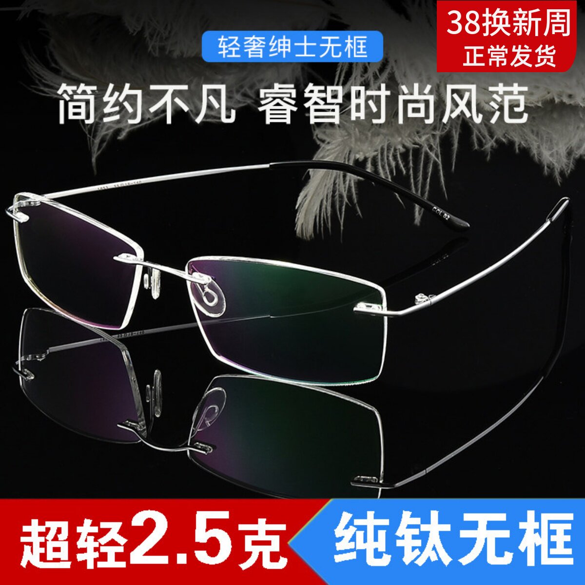 无框超轻眼镜 配有度数近视眼镜 女超轻纯钛无框切边眼镜架男舒适