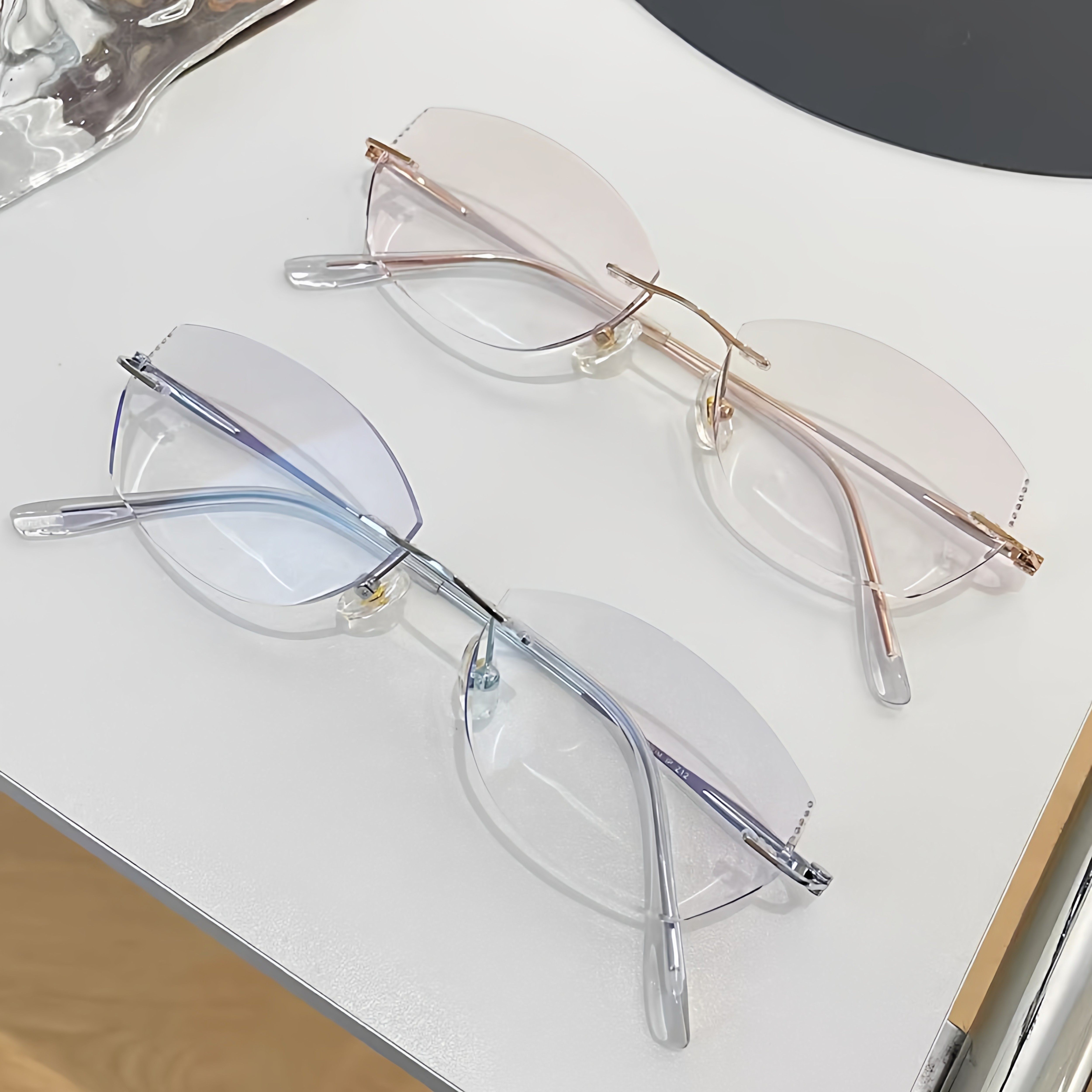 超轻无框眼镜女近视可配度数优雅无边框防蓝光变色切边眼镜女丹阳