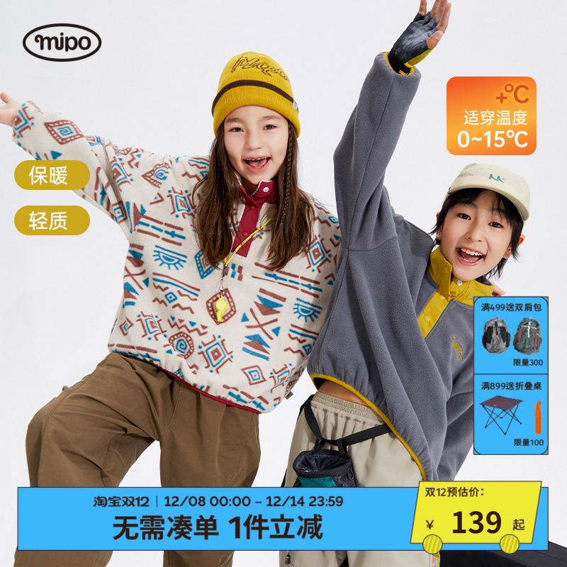 mipo冬季儿童摇粒绒卫衣男女童保暖圣诞印花户外抓绒上衣抗静电