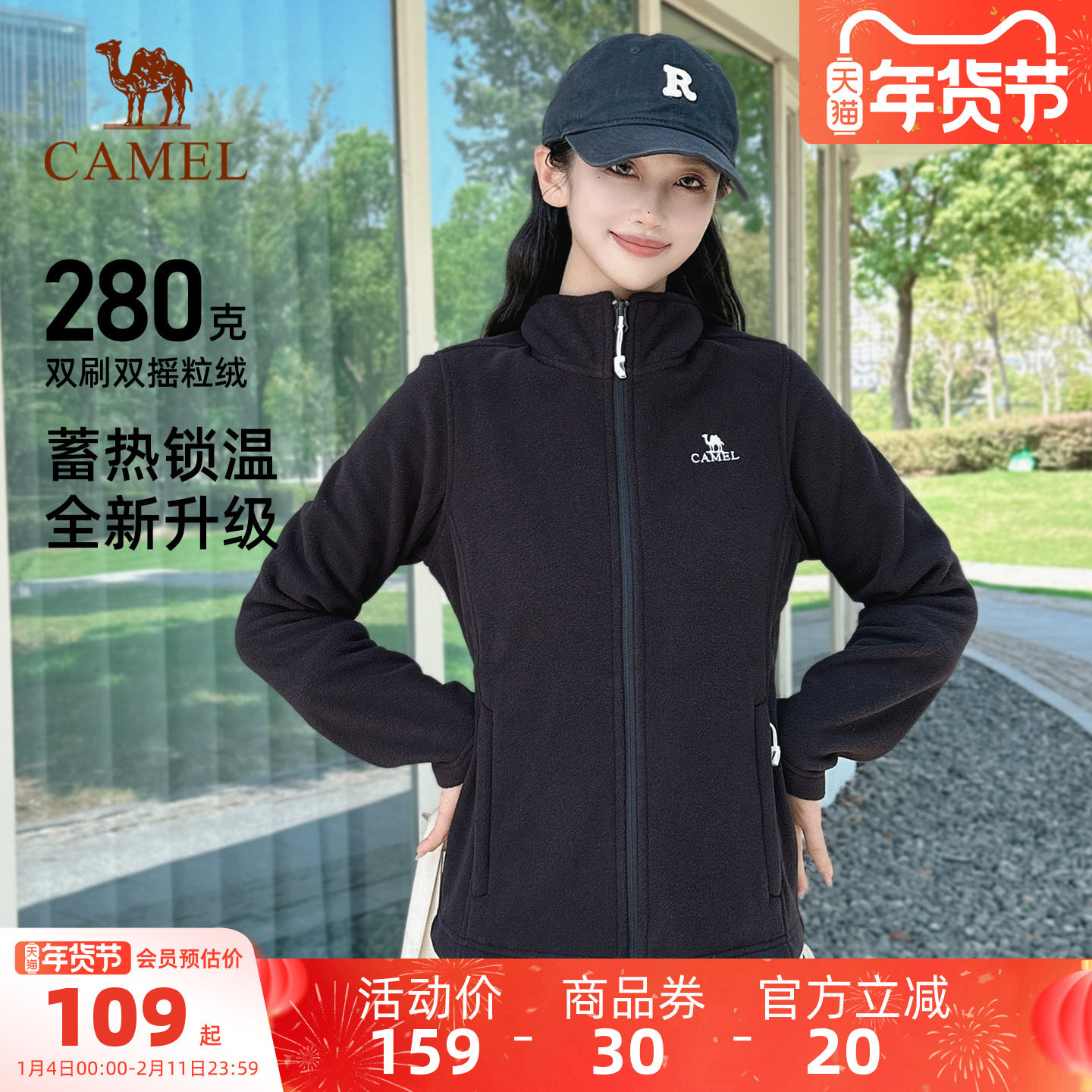 骆驼户外抓绒衣女款摇粒绒外套26新秋冬加绒加厚抗静电开衫卫衣女
