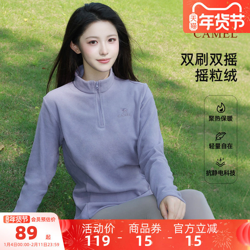 骆驼抓绒衣女士外套2026新款户外秋冬加绒加厚双面摇粒绒立领开衫